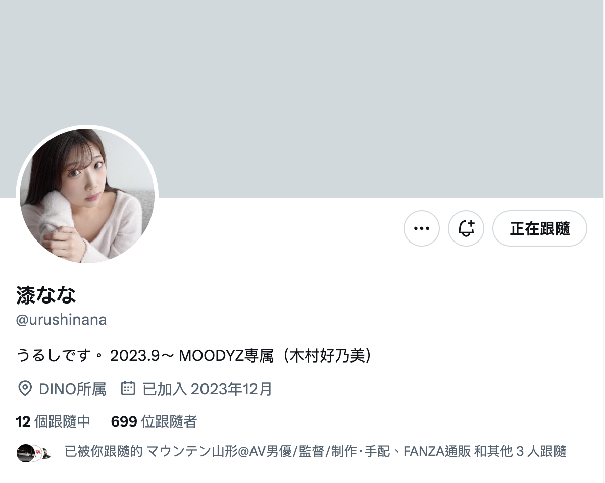 直接说答案,她人还在,不过已经不是「木村好乃美」了,现在她去了另一家经纪公司Dino并且改名为「漆なな(漆奈奈)」,也已经有了新社群(https ://twitter.com/urushinana),因为怕大家不知道,她直接就在自我介绍栏告诉大家「我是2023年9月出道的木村好乃美喔」: