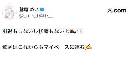 你有听过鹫尾めい(鹫尾芽衣)即将引退的消息吗?